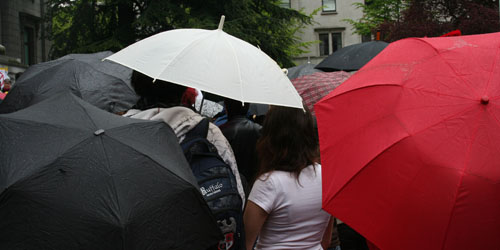 | {What Vancouver protest is complete without umbrellas and rain?} |