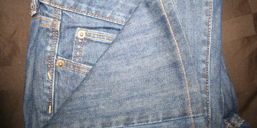 | 5. I cleaned out some drawers this week and cut these out of an old pair of jeans to make new soles for my slippers. Fixing something old with something else old makes me happy. |