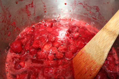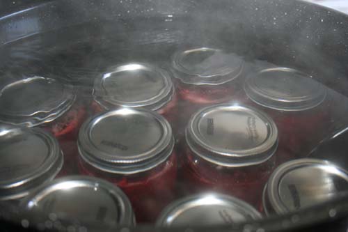* If you make jam here’s a little clean up tip: after you’ve removed your last batch of jars from the boiling water, throw all of the rags and cloths you used during the process into the water. Turn the heat back up and throw in some OxyClean, vinegar or hydrogen peroxide and boil your cloths for a few minutes. It’ll get the stains out and make use of the last of the hot water.
