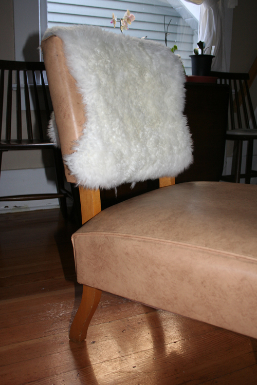 | {A new sheepskin rug on the back of a chair. A new and favourite autumn addition!} |