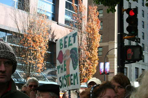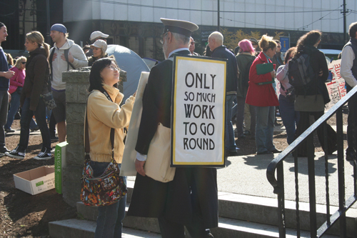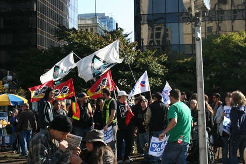I didn’t attend Occupy Vancouver this weekend but I did catch part of it. (Nick’s parents were here this weekend and we were downtown for a bit on Saturday.) I have to say that I agree with the sentiments of the Occupy Wall Street movement. I think that the gap between the rich and the rest of us is too great and not for a good reason. There’s a lot going on in the world that’s not okay with me and I’m glad that people are starting to point that out to the people in charge.