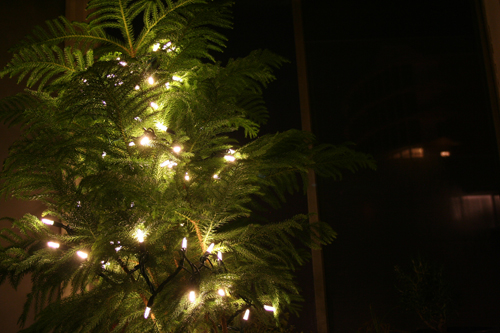 | {Our small, potted Christmas tree.} |