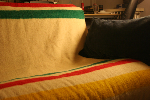| {It is well documented on this blog that I really wanted a Bay blanket, well … I got one! Courtesy of my friend Norm who found this one at a flea market and gave it to us as a housewarming gift. I’m in love.} |