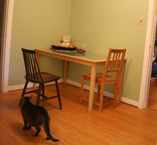 | {The dining room, with foreshortened cat.} |