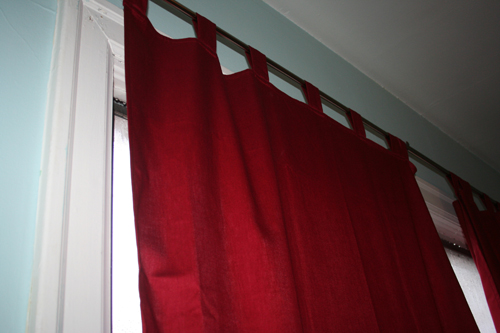| {Finally replacing the sheet we were using as curtains with the real thing.} |