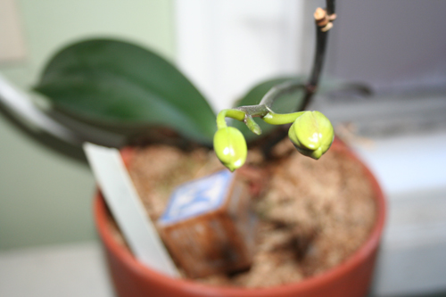 | {Impending blossoms on my orchids remind me that spring isn’t too far away.} |