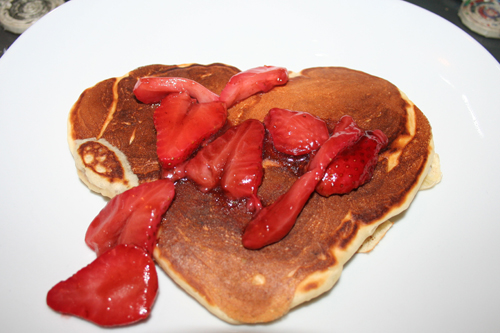 | {Heart-shaped pancakes from Valentine’s day.} |