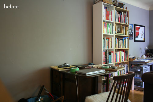 Now that I’m back in school and hoping to run a full-time freelance business after I’m done with school, I definitely needed a better office. So for this week’s William Morris project I decided to get on an idea I’d had formulating for the last several weeks. Since we live in a one bedroom apartment, dedicating a section of the living room seemed like the best plan (N has his office in our living room too).