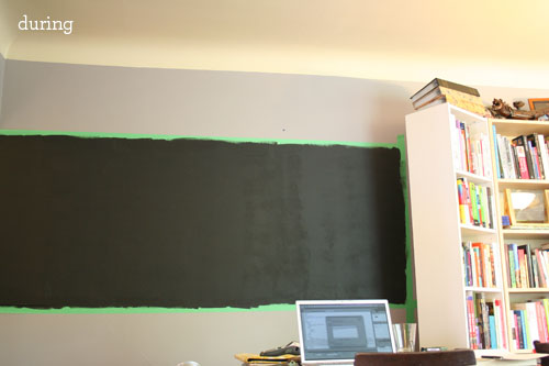 I wanted to make my section of the room seperate from the rest living area and from N’s office. I’ve always wanted to use chalkboard paint so I decided that this would be the project! On the weekend, I painted a one-metre strip of chalkboard paint above my desk and added a few of my favorite pieces of art from around our apartment. I’m hoping to add a few small things to the wall collection but for now I think the art chunk in the middle of the chalkboard breaks the stripe up pretty nicely. (The left side is close to our front door so will work well for notes and grocery lists and the like.) Though it might seem a little strange to have a deer skull hanging in our living room, it gives us a touch of Alberta (home) which I’m pretty fond of.